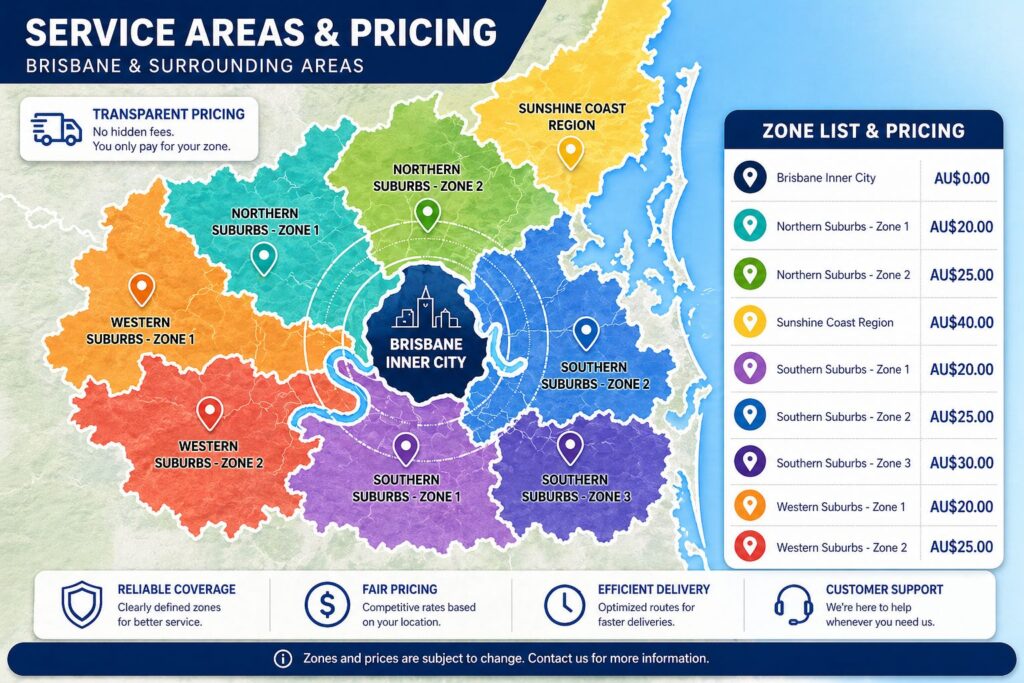 If you cannot find your suburb or are unsure about your assigned zone, please contact us for more information and confirmation.